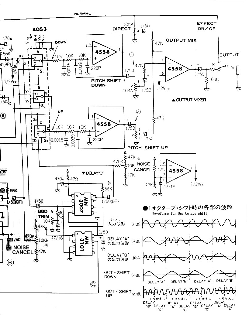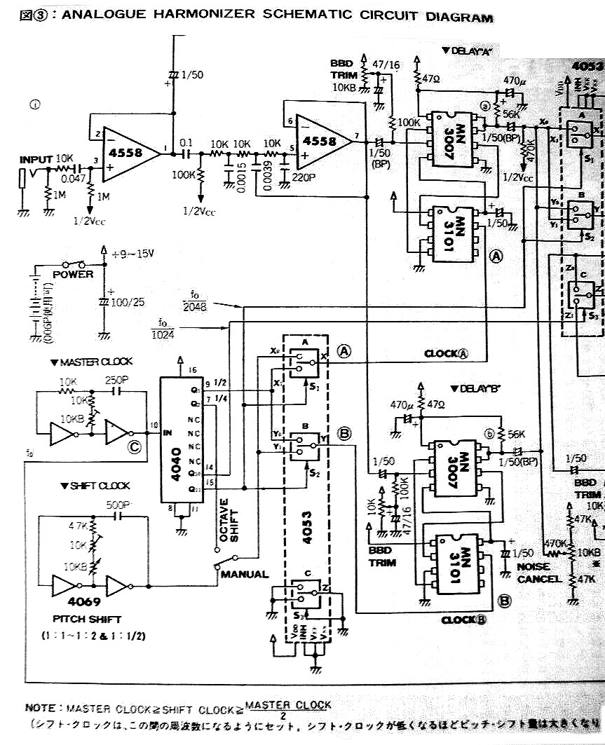 Редкая схема аналогового питч-шифтера. Вокальный-не вокальный, но сдвинет, на сколько надо. Принцип простой (простой?): записать на одной скорости, воспроизвести с другой. Небольшая задержка, конечно же будет, впрочем, как и в цифровом.