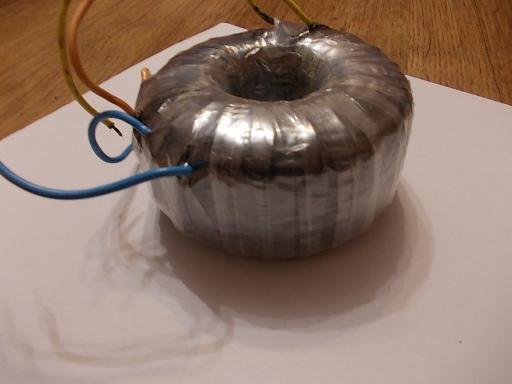 Сегодня выделил время на намотку трансформатора. Намотал всё за ночь(в общей сложности часов за 5 где-то). Так выглядел транс со смотаными вторичками. Первичка была обмотана такой же лентой, что и снаружи.