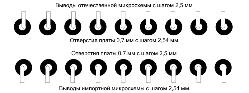 маленько неточный совет. У стандарта DIP шаг выводов в 0,1 дюйма (2,54 миллиметра). совки делали естественно наоборот